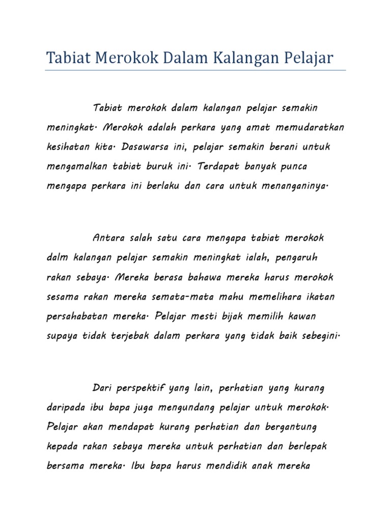 Tabiat Merokok Dalam Kalangan Pelajar Pdf